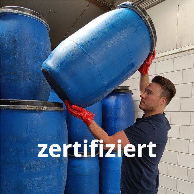 Wenn unsere Altöltonne voll ist, genügt eine WhatsApp an Filta Berlin. Spätestens nach zwei Tagen ist das Öl abgeholt, eine leere Tonne da und kurz darauf die Rückvergütung auf unserem Konto.